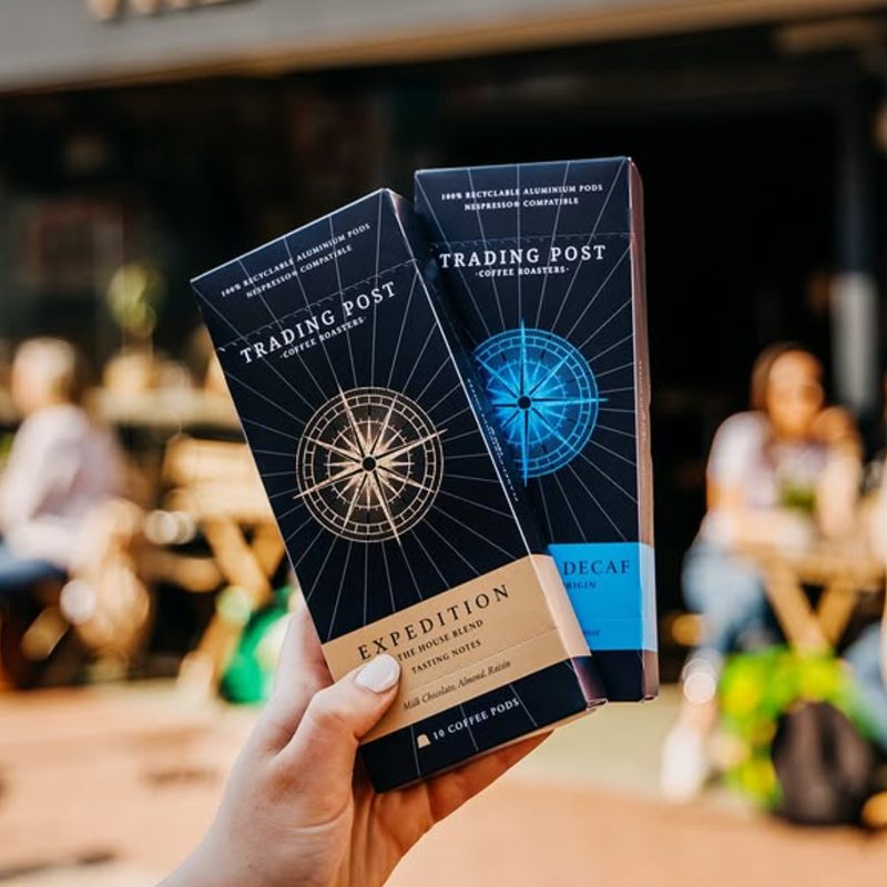 The result is a cohesive yet distinctive Coffee Packaging Design that positions the pods as a natural extension of Trading Post’s range. The design reflects a modern, sustainable, and premium aesthetic, staying true to the brand’s independent ethos and commitment to planet-conscious coffee. It was also created with flexibility in mind, allowing the range to adapt easily for future releases while remaining instantly recognisable to loyal customers and appealing to new ones.